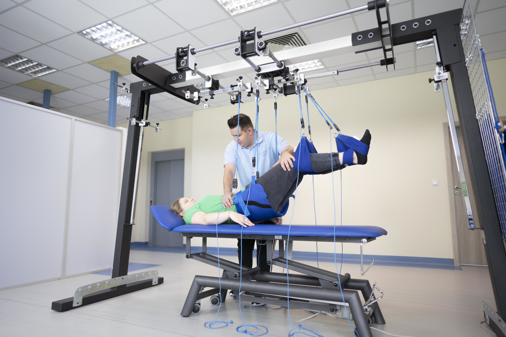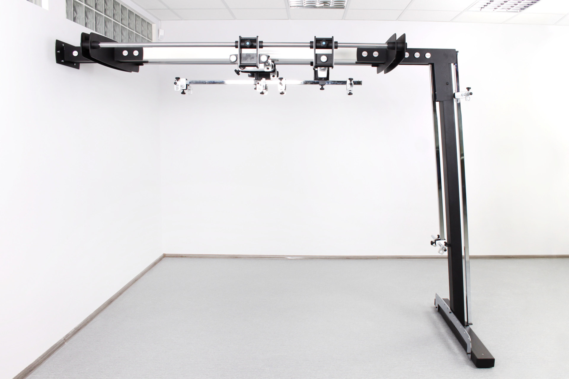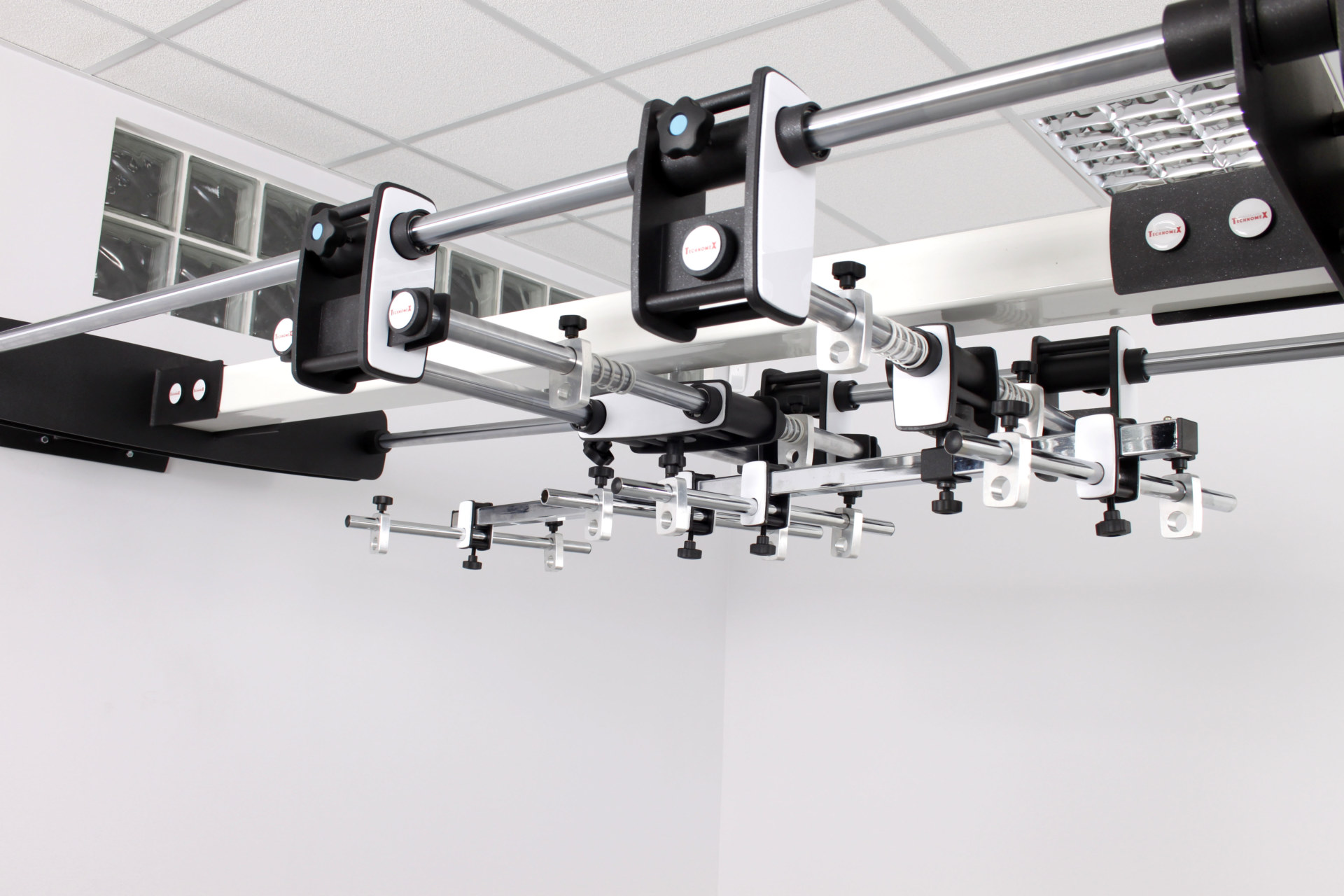 En la parte superior, está equipada con 12 puntos de suspensión, 6 laterales con altura variable, y en la parte inferior con puntos individuales pequeños para la fijación de cables y cinchas en ambos lados de la base. Los carros se deslizan sobre rodamientos de alta calidad, lo que garantiza un movimiento extremadamente suave y permite realizar ejercicios utilizando toda la longitud de los rieles, enriqueciendo la terapia en el dispositivo. Gracias a los múltiples puntos de anclaje para suspender accesorios y al brazo oscilante, esta versión cuenta con un rango de tratamiento más amplio que otros dispositivos similares disponibles en el mercado.